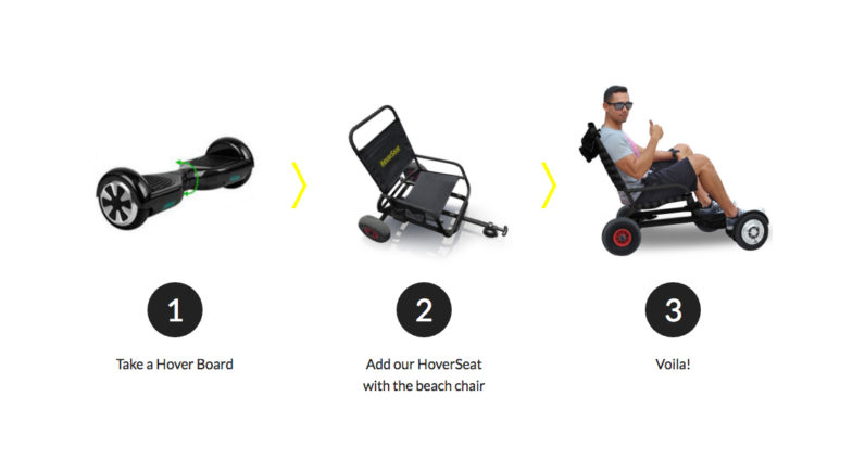 If you’ve always missed the comfort of sitting while riding your hoverboard, this quirky invention might just be what you’re looking for. The HoverSeat is an aluminum die-cast frame that attaches to your hoverboard turning it into a speedy wheelchair. Designed with safety and comfort in mind, the HoverSeat is easy to install and will have you rolling around in less than 60 seconds. Once installed, you can navigate the HoverSeat with your feet and move freely in all directions, including reverse. In addition to using it for personal transportation, the HoverSeat will also come in handy when moving heavy shit – as you can easily add more attachments to the back. At…